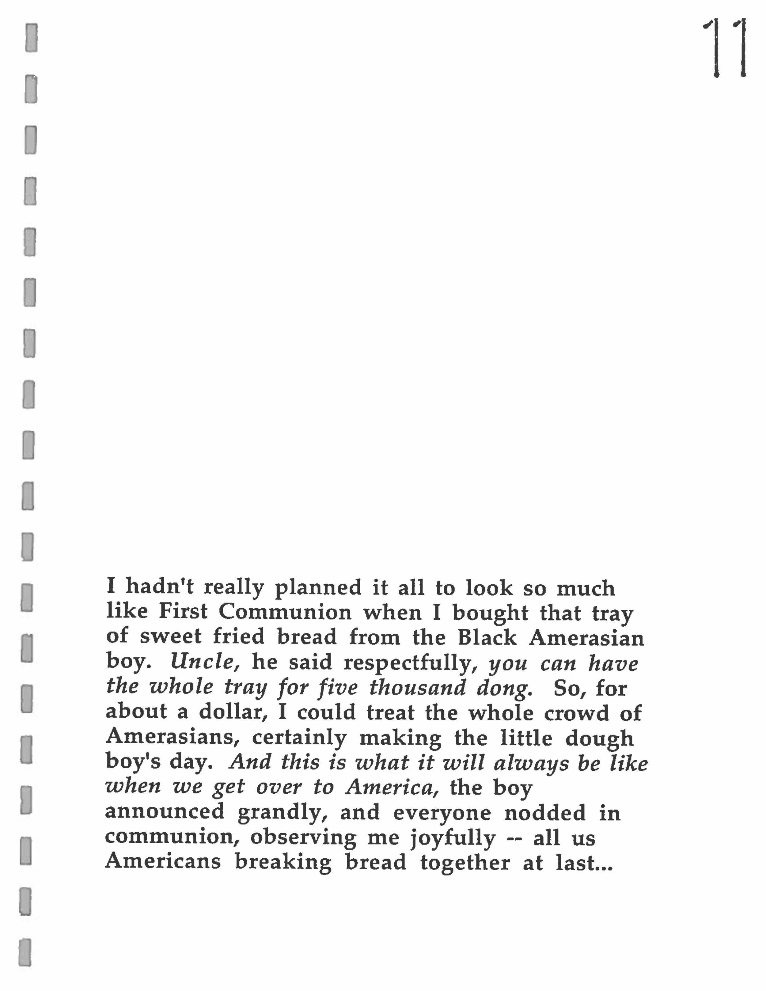 Dĩ nhiên, đã có rất nhiều người giúp tôi làm rõ những suy nghĩ của mình về những bức ảnh được chia sẻ ở đây – về ngôn từ, ngữ pháp, hương thơm và cảm nhận. Nhưng trên hết, chính những người con lai Mỹ là những người mà trái tim tôi đã lắng nghe. Tôi vô cùng biết ơn tất cả họ.